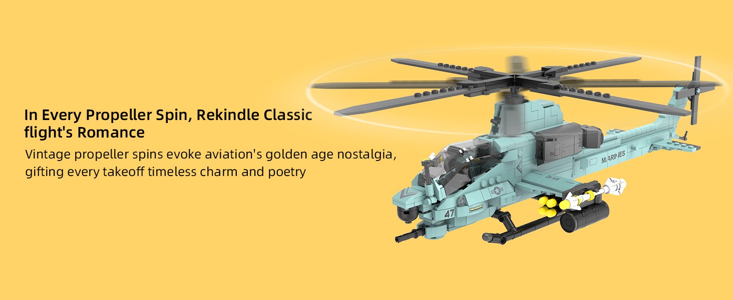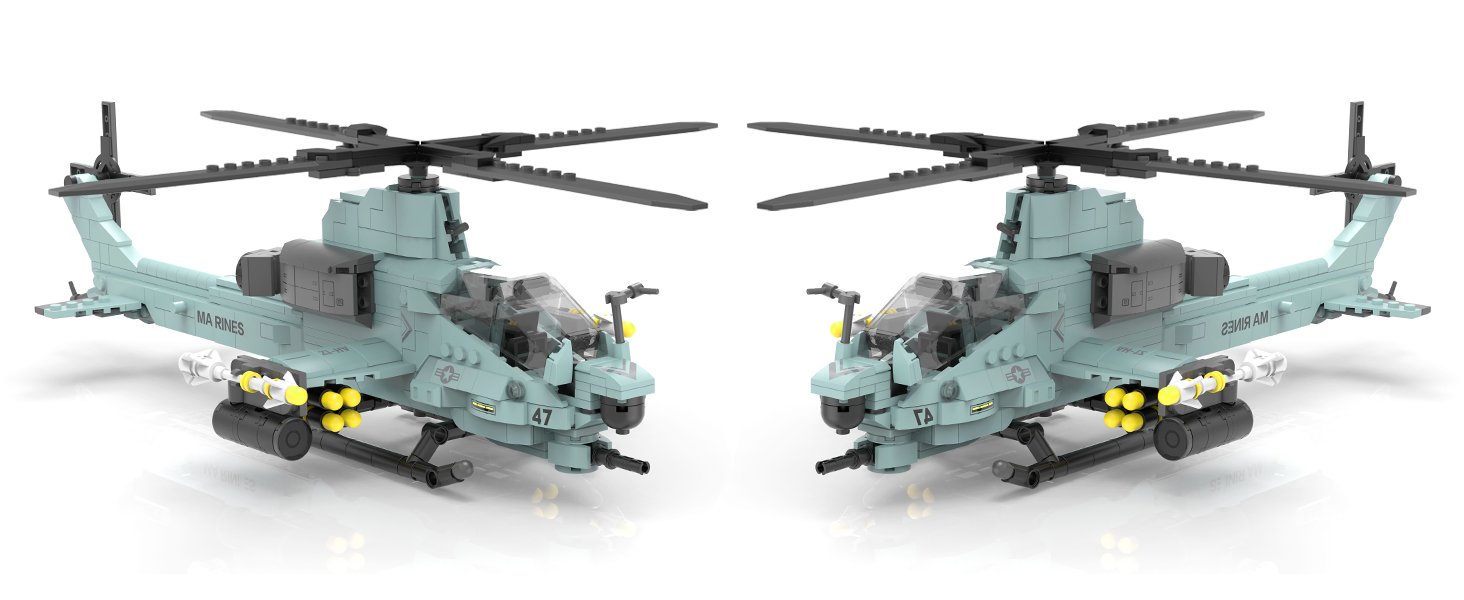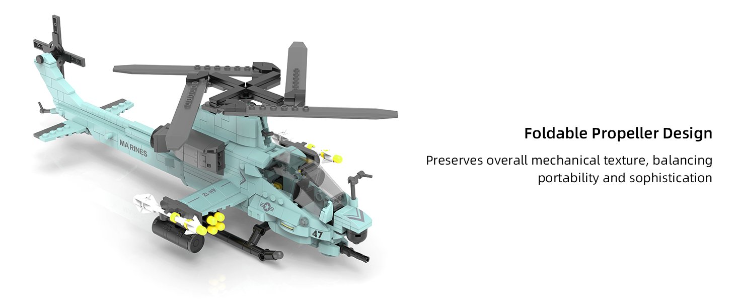 【Recreating AH-1Z Viper Attack Helicopter】The most advanced four-rotor twin-engine attack aircraft of the U.S. Marine Corps, With tandem cockpit and integrated weapons. Its sharp profile defines the king of the battlefield—you can almost hear the rotors’ roar.”