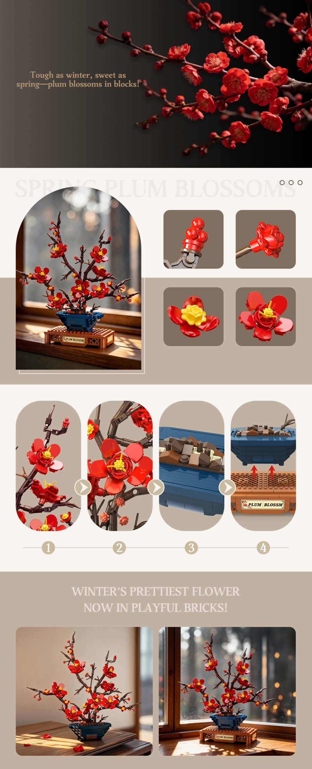 - 1.Plum Blossom’s Core Spirit in Blocks – Built around resilience nobility hope new beginnings and vitality—blooming bravely in cold. More than decor it’s meaningful sustenance for adults.