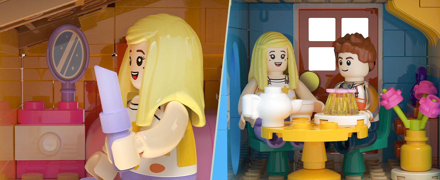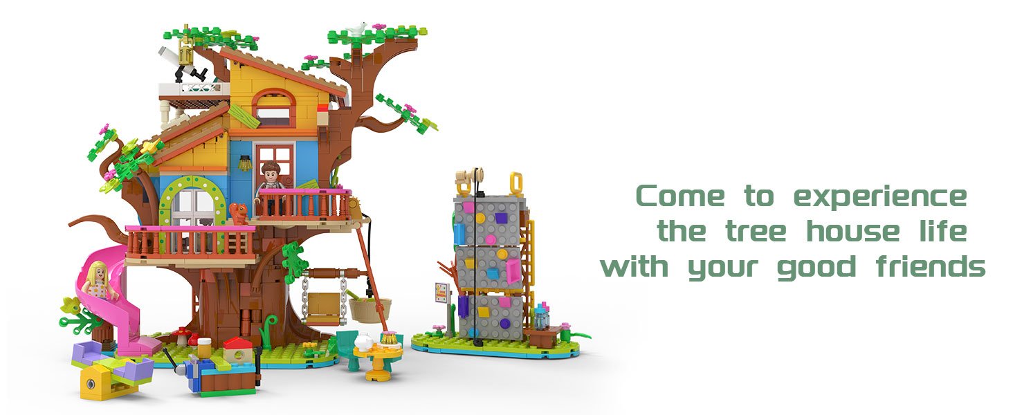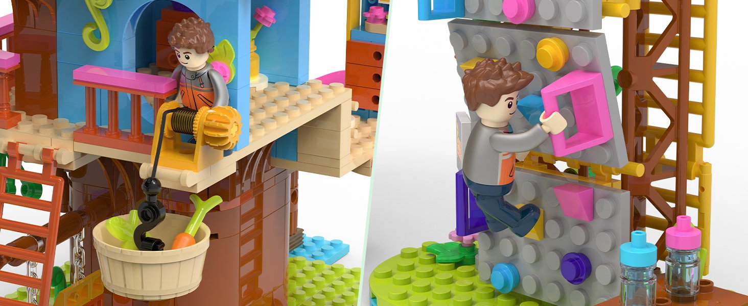 • Packed with delightful mini-features! From the telescope on the balcony to the hanging basket, colorful climbing wall, and movable swing, every corner has something to discover. Kids can build, then play—using the set to make a seesaw, host a tea party, or go on a “tree top adventure.” The bright, vibrant colors and cute design make it a standout addition to any playroom